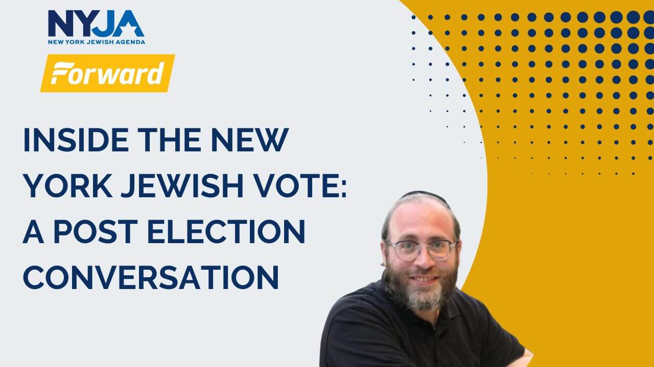 Join a post-election conversation on the role of New York Jewish voters and Jewish issues, featuring NYJA Executive Director Phylisa Wisdom, the Forward‘s senior political reporter Jacob Kornbluh, and NY campaign and polling expert Evan Roth Smith.