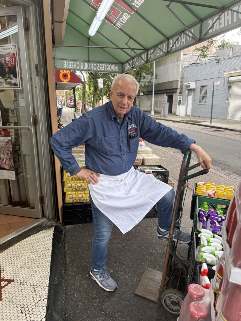 Teitel Brothers Wholesale Grocery on Arthur Avenue and 186th Street. Eddie Teitel stands by the entrance. Photo by PJ Grisar