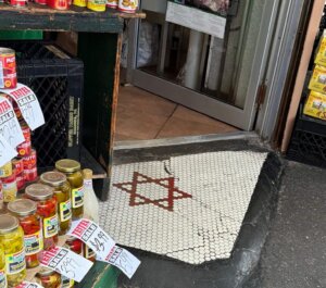 Asked if selling soppressata or capicola was ever a problem for the family, Orthodox immigrants from Tarnobrzeg in what is now Poland, Teitel pointed to a pattern of contrasting tiles by the store entrance: a crimson Star of David mosaic added in the 1930s, in response to events in Europe.