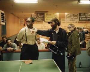 He didn’t have too much time to banter with the film’s stars during the shoot; most of his time on set was spent with other bit-players. But when the camera was shooting other actors, Safdie wanted to keep the sound of live table tennis in the background, so he had Chalamet and Simon play each other off-camera.